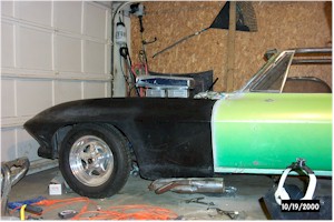 I bolted one of the rusted-out headers that came with the car. The engine